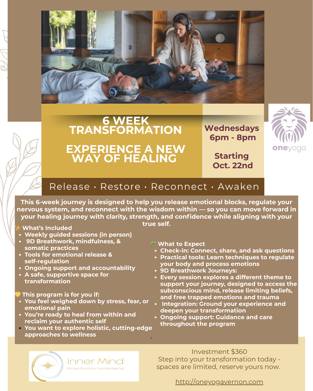 At One Yoga Vernon, we’re here to support your journey toward balance, peace, and inner wisdom. ✨