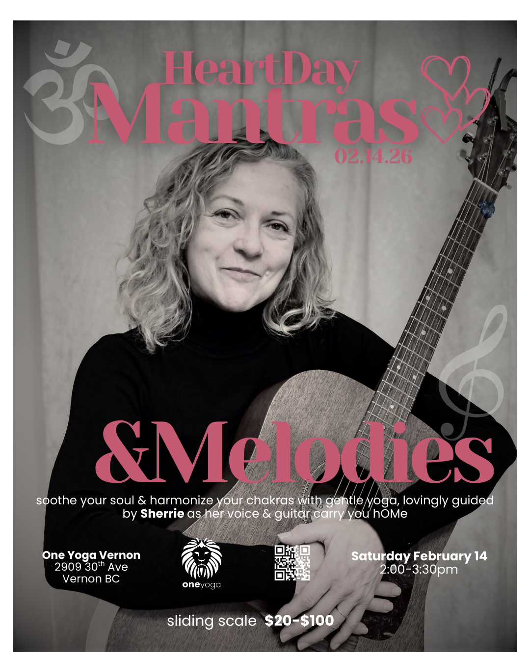 Join us for Mantras & Melodies with Sherrie—a gentle yoga experience designed to harmonize the chakras, soothe the soul, and invite deep inner stillness through movement, mantra, and Sherrie’s beautiful voice and guitar.